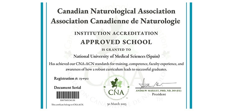 We are happy to announce that the National University of Medical Sciences has received accreditation from the Canadian Naturological Association – Association Canadienne de Naturologie. Alumni in the fields of naprapathy, osteopathy, athletic therapy and botanical medicine can now apply to CNA-ACN for membership which includes professional liability insurance for doctors of naprapathy, which is a first in Canada.